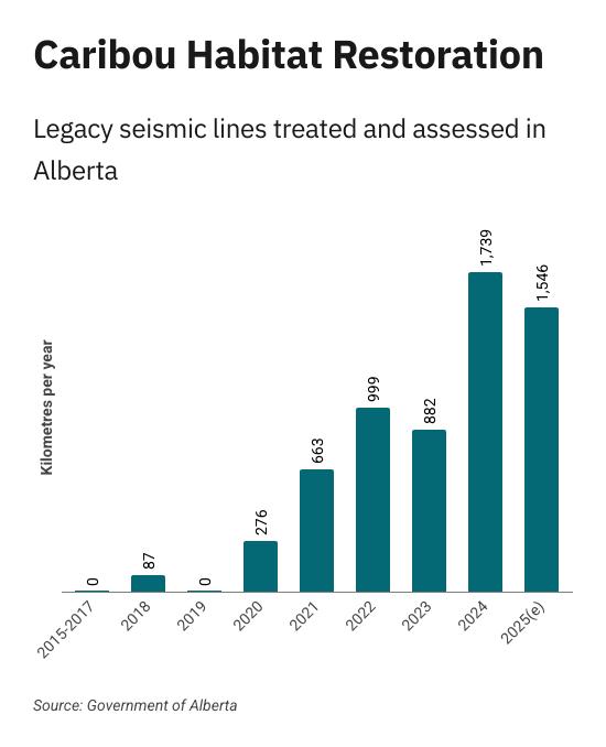 Since 2019, more than $90 million has been invested in assessing and restoring legacy seismic lines under Alberta’s Caribou Habitat Recovery Program, the province says.