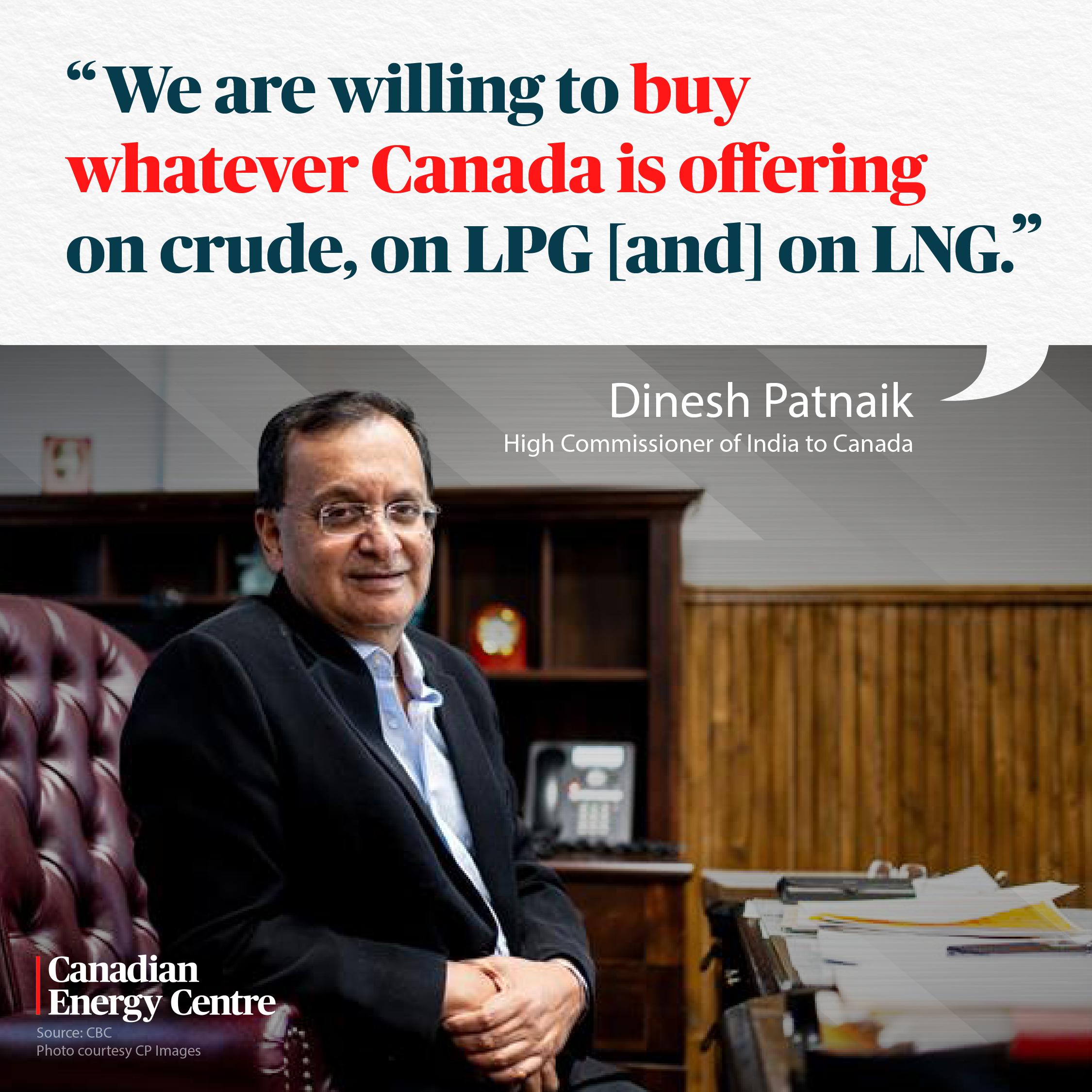 GRAPHIC: “We are willing to buy whatever Canada is offering on crude, on LPG [and] on LNG.” By CEC Staff on March 12, 2026, 3:32 pm MDT Social Related Stories Natural Gas / Oil | March 12, 2026 GRAPHIC: “We are willing to buy whatever Canada is offering on crude, on LPG [and] on LNG.” Oil | March 12, 2026 GRAPHIC: Vancouver port applies to dredge Burrard Inlet this year to fuel oil exports Emissions / Natural Gas / Oil | March 12, 2026 GRAPHIC: Oil, gas and pipelines lead Canadian environmental spending