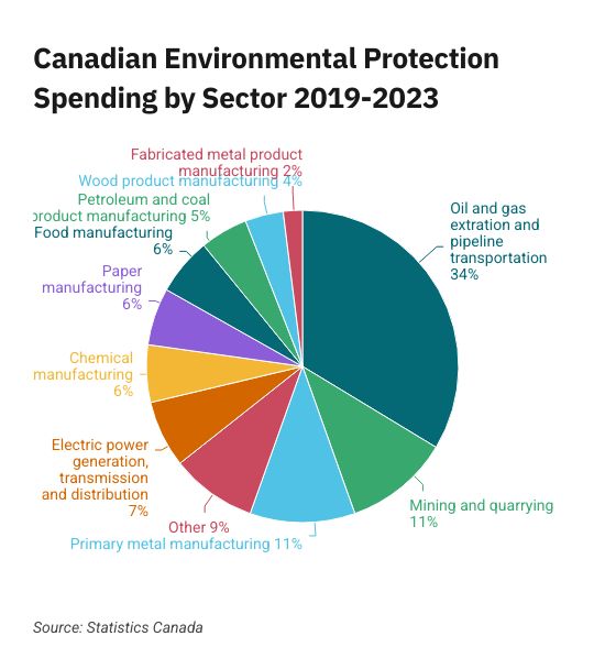 Statistics Canada reports that oil and gas producers and pipeline operators spent $4.3 billion on environmental protection in 2023 — the highest total among the 20 industries surveyed.